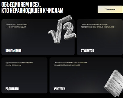 Всероссийский математический диктант АНО ДПО «Т-Образование» открывает регистрацию на Всероссийский математический диктант для школьников, учителей, студентов и родителей. 30 ноября в честь Дня Матем ... Читать дальше »